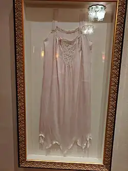 A slip dress is a woman's dress that closely resembles an underslip or petticoat.[1] It is traditionally cut on the bias, with spaghetti straps.[1] The slip dress looked like an undergarment, but was intended to be seen, and through the use of lace and sheer elements, offer glimpses of the body beneath.[2] Designers associated with slip dresses include John Galliano, whose debut design for Dior was a lace-trimmed slip dress worn by Diana, Princess of Wales in 1996;[3] Calvin Klein and Narciso Rodriguez.[1][4]