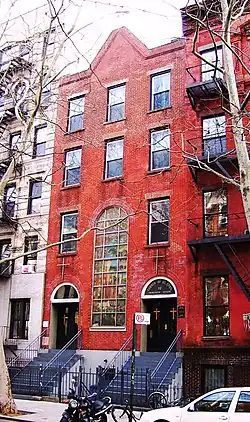 In July 1916, the Slovenian immigrants collectively purchased a property on St. Marks Place for $19,000.[4] On Memorial Day 1916, they celebrated the establishment of the new church with the blessing of the cornerstone.[5] The first mass was on Independence Day, July 4, 1916, following a parade from the previous German church used by the Slovenians, the now-demolished St. Nicholas Church, to the new church of St. Cyril.[3]