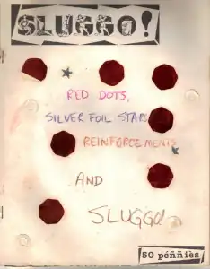 Founded in 1978 by Nick West[2][3] and E.A. Srere,[4] Sluggo! began as a tabloid-sized photocopied publication, and evolved into a quintessential DIY publication. The first issue appeared in December 1978.[5] With the donation of a Multilith 1250 offset press and an array of colored inks, Sluggo! acquired its distinctive multi-colored, multi-faceted appearance. Sluggo! look was also defined by its unique covers – hand-crafted on some issues, individually silk-screened on black velvet on the finale.