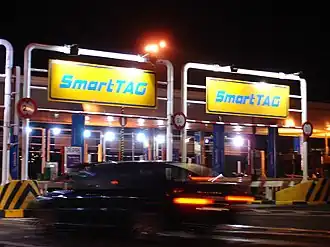 SmartTAG (acronym in Malay for Sistem Membayar Automatik Rangkaian Tol or "Toll Network Automatic Payment Systems") is an on-board unit (OBU) vehicle-based device used as an electronic toll collection (ETC) system over long distances (maximum 15 metres) to complement Touch 'n Go, a card-based system. It was first introduced in Malaysia in 1999 and is also used as an Entrance Access Security.