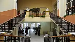 The Smederevo Gymnasium (Serbian: Гимназија Смедерево, Gimnazija Smederevo) is a public coeducational high school (gymnasium, similar to preparatory school) located in Smederevo, city in Podunavlje District, Serbia. The Gymnasium is the sole high school institution of its kind located in the city of Smederevo. The school was opened in 1871 as a small and modest educational institution with only 35 students enrolled during the inaugural school year. Milan Maksimović undertook the responsibilities of teaching Serbian grammar and geography while also serving as the first deputy director. Branislav Nušić is one of the most prominent former students of the high school.[1] The school is recipient of Yugoslav era Order of Merits for the People with Golden Star.[2]