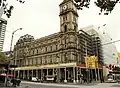 Corner of Elizabeth and Bourke streets, Melbourne, Victoria | Classically inspired and relies on the superimposition of the classical orders in a series of tiers over an arcuated base. This basic hierarchy of orders is derived from Colesseum in Rome. Johnson's original design was a two-storey structure with a striking mannerist tower. This was later extended into a three-storey structure with a new, and rather more conventional, clocktower by J G Knight. The building was never completed (the northern pavilion on the corner of Little Bourke Street was left incomplete). After a devastating fire in September 2001, Australia Post leased the complex to developers who remodelled the building as a shopping mall in 2004. |
