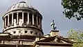 | Supreme Court of Victoria and Supreme Court Library | 1874–1884 | Smith & Johnson | Academic Classical, in the high Victorian period | 192 Williams Street, Melbourne, Victoria | Smith and Johnson collaborated on a competition for the project in 1873, prior to Johnson's resignation from the PWD. The total complex, including the central library, was designed documented by the newly formed practice of Smith and Johnson, cooperating with the Public Works Department. The planning of the building is notable for a sophisticated separation of the main classes of users (judiciary, judges, public and prisoners) based on design models developed for the London Law Courts competition of 1868, and widely published. It also features an early example of a thermal chimney system for ventilation of the individual courts, using air drawn down into a subfloor area through a large shaft in the corner of each courtroom, and a cross ventilated false ceiling space creating negative pressure to draw air out of the court ceiling space. This system was necessitated in part by the use of large gasoliers to light the courtroom areas. The building features a large dome supported by columns of the ionic order. This area of the library structure is largely decorative (the main functional areas of the library are located in the lower two levels) and is heavily influenced by James Gandon's Four Courts in Dublin, Ireland. | |