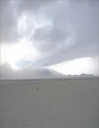 The Smoke Creek Desert is an arid region of northwestern Nevada, that lies about 60 miles (97 km) to the north of Pyramid Lake, west of the Fox Range and east of the Smoke Creek Mountains. The southern end of the desert lies on the Pyramid Lake Indian Reservation, and a rail line lies at the eastern edge. The Smoke Creek Desert is southwest of the Black Rock Desert's South Playa and is between the Granite Range and the Fox Range.