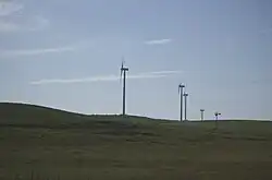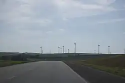The Smoky Hills Wind Farm (Phase I & Phase II) is a 250 megawatt (MW) wind farm in Lincoln and Ellsworth Counties, 140 miles west of Topeka in Kansas, north of Ellsworth. The farm is operated by Enel Green Power.[1] Highway K-14 and Interstate 70 pass through parts of the wind farm, with clear views of many of the wind turbines.[2] The project uses 56 Vestas V80 1.8 MW wind turbines[3] and produces enough electricity to power some 37,000 average Kansas homes annually.[4] As of 19 November 2008, phase II is under construction with 99 GE 1.5 MW wind turbines for an additional 148.5 MW,[3] to bring the total nameplate capacity to 249.3 MW.[5] Phase II was completed and began commercial operation in December 2008.[6]