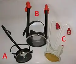 Among recent innovations is the "collapsible snorkel", which can be folded up in a pocket for emergencies for scuba divers who may not need a snorkel on every dive.[69] One for competitive swimmers is a lightweight training snorkel with twin inlet tubes, which exhausts through a valve underwater, similar to the exhaust valve of a diving demand valve, so the dead space is restricted to the mouthpiece volume;[70] another is a "restrictor cap" placed inside a snorkel barrel "restricting breathing by 40% to increase cardiovascular strength and build lung capacity".[71] Some additional snorkel features such as shut-off and drain valves fell out of favour decades ago, only to return in the contemporary era as more reliable devices for incorporation into "dry" and "semi-dry" snorkels.[61]