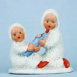 Snow Babies are small figurines made from slipcast porcelain depicting a child dressed in a one-piece snowsuit. The hardened porcelain is coated with slip containing grog to imitate the texture of snow, which is then was fired and painted.[1][2][6]