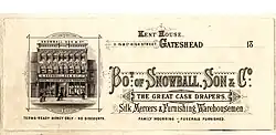 In 1850, William Snowball opened his department store at 15-25 High Street, Gateshead. The store sold a variety of household goods and furnishings.[1] William's older brother James Snowball was a successful businessman running the Snowball Fire Brick company and owning several Collierys.[2]
