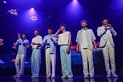 ![]() Snuper at an autograph event at Lotte Mall in Gimpo, October 2018. Left to right: Taewoong, Suhyun, Sangil, Woosung, Sangho, and Sebin  | |