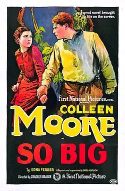 So Big is a 1924 American silent film based on Edna Ferber's 1924 novel of the same name which won the Pulitzer Prize for the Novel in 1925. It was produced by independent producer Earl Hudson the film and distributed through Associated First National. Unseen for decades, it is considered to be a lost film. Only a trailer survives at the Library of Congress.[1][2][3]