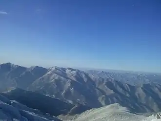 The Sobaek Mountains (Korean: 소백산맥, literally mean little Taebaek Mountains) are a mountain range cutting across the southern Korean peninsula. They split off from the Taebaek Mountains and trend southwest across the center of the peninsula. They are traditionally considered to reach their southwestern limit at Jirisan, which, at an elevation of 1,915 meters, is also the highest peak of the range. Other famous mountains in the range include Songni Mountain, Joryeong Mountain, Gaya Mountain, Worak Mountain, and Sobaek Mountain itself. The peaks of the Sobaek Mountains are generally well over 1,000 m above sea level.[1][2]