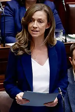 On 22 February 2023, Murphy and Shortall announced that they would step down as co-leaders of the Social Democrats.[19] Holly Cairns was the only candidate to put her name forward for leadership of the party, and she was announced as the new leader on 1 March.[20][21] On becoming leader, Cairns reiterated that the Social Democrats have no interest in merging with the Labour Party, which had been repeatedly suggested but rejected by the Social Democrats' party leadership.[22][23][24][25] She said that housing and Sláintecare would be red line issues for the Social Democrats in any coalition talks with any party.[26] On 4 July 2023 it was announced that Cian O'Callaghan had been appointed to the newly created role of deputy party leader.[27][28]