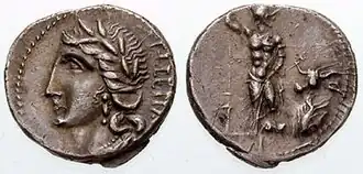 Most of the ancient accounts attributed the war to allied demands for citizenship.[144] However, these accounts were written in the aftermath of the war, which extended that citizenship, and largely fail to justify how citizenship became an Italian demand.[145] The core surviving source is Appian; other literary accounts – such as those of Lucius Cornelius Sisenna, Lucullus, Sulla, Diodorus Siculus, and Livy (who wrote more on the Social war than the Second Punic War) – are fragmentary or lost.[146] No Italian perspectives survive, except that which can be gleamed from the few Italian coins.[147]