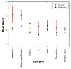 The negative manipulation created an asymmetric herd effect: although the probability of subsequent down-votes was increased by the negative treatment, the probability of up-voting also grew for these comments. The community performed a correction which neutralized the negative treatment and resulted non-different final mean ratings from the control group. The authors also compared the final mean scores of comments across the most active topic categories on the website. The observed positive herding effect was present in the "politics," "culture and society," and "business" subreddits, but was not applicable for "economics," "IT," "fun," and "general news".[11]-