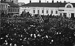The goal of the socialist movement had originally been moderate, a simple protest against the Russian Governorship. However, the general strike had moved the Social Democrats towards the left with the influx of new people sympathetic to the cause, in which the moderates and unionists became the minority.[7] Workers' strike committees were established in Tampere, and across many cities "street parliaments" became a common occurrence. All of this was much too radical for many Young Finns and Svecomen.[9] The demands of the Social Democrats had changed, and their new demands such as a unicameral parliament and equal voting rights for all citizens, were too radical for some. Especially to the Young Finns and to the Finland-Swedes, characterized as the most conservative of the radicals, they began to detach themselves from the movement.[9]