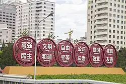 ![]() Statue listing the twelve Core Socialist Values of the Chinese Communist Party | |||||||||||||||||
