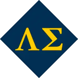 Lambda Sigma's official symbol is composed of the Greek letters Lambda and Sigma in gold imposed on a blue lozenge. The letters are emblematic of the society's ideals of leadership and scholarship.[4][2] The society's colors are blue and gold. Its symbol is the blue diamond.