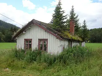 A sod roof, or turf roof, is a traditional Scandinavian type of green roof covered with sod on top of several layers of birch bark on gently sloping wooden roof boards. Until the late 19th century, it was the most common roof on rural log houses in Norway and large parts of the rest of Scandinavia. Its distribution roughly corresponds to the distribution of the log building technique in the vernacular architecture of Finland and the Scandinavian peninsula. The load of approximately 250 kg per m2 of a sod roof is an advantage because it helps to compress the logs and make the walls more draught-proof. In winter the total load may well increase to 400 or 500 kg per m2 because of snow.[1] Sod is also a reasonably efficient insulator in a cold climate. The birch bark underneath ensures that the roof will be waterproof.