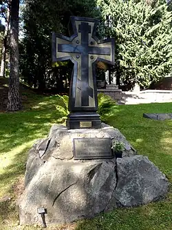Kovalevskaya died of flu complicated by pneumonia in 1891 at age forty-one, after returning from a vacation in Nice with Maxim.[2]: 231  She is buried in Solna, Sweden, at Norra begravningsplatsen.