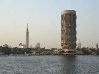 The Sofitel Cairo Nile El Gezirah Hotel is a skyscraper hotel located in Cairo, Egypt. The 27-story building was completed in 1984 as the El Gezirah Sheraton Hotel & Towers. The modernist building is located on Sharia el Orman, and contains 4 large conference rooms. The discernible v-shaped support beams of the structure evoke those at the Dizengoff Center in Tel Aviv.[2]