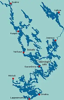 Soisalo (Finnish pronunciation: [ˈsoi̯ˌsɑlo]) is an area in central Finland, south of Kuopio. It is commonly regarded as the largest island of Finland. While it is an area of land surrounded by water (the lakes Kallavesi, Unnukka, Suvasvesi and Kermajärvi), as the lakes are narrow in places they are more like rivers, there is an argument that it is not a true island.[1]