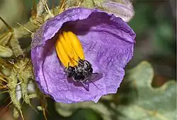Solanum is a large genus in the Solanaceae family with over 100 different species in the family occurring in Australia, and a large majority of them also being native.[3] Particularly many species occur in arid and semi-arid areas, though many also have wide distributions excluding alpine, saline and aquatic habitats.[3]