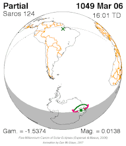 | 124 | 3 | March 28, 1085 | 7:34:42 | Partial | 71.8S 145.3E | -1.4444 | 0.179 | [3] | ||