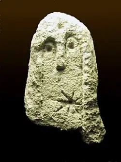 Albanian beliefs, myths and legends are organized around the dualistic struggle between good and evil, light and darkness, which cyclically produces the cosmic renewal.[83] The most famous representation of it is the constant battle between drangue and kulshedra, which is seen as a mythological extension of the cult of the Sun and the Moon, widely observed in Albanian traditional art.[84] In Albanian traditions, kulshedra is also fought by the Daughter of the Moon and the Sun, who uses her light power against pride and evil,[85] or by other heroic characters marked in their bodies by the symbols of celestial objects,[86] such as Zjermi (lit. 'the Fire'), who notably is born with the Sun on his forehead.[87]