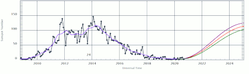 The event occurred in 2012, near the local maximum of sunspots that can be seen in this graph.