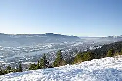Solbergelva is a village in Drammen municipality in Buskerud, Norway. The village lies north of Drammenselva, approx. 5 miles west of Bragernes square, between Åssiden in the east and Krokstadelva in the west with Solbergfjellet north. It is part of Drammen municipality and has about 6.000 inhabitants in 2017.[1]
