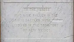 North-facing Panel #4: TO THE HEROES WHO HAVE FALLEN IN THE VARIOUS BATTLES WITH SAVAGE INDIANS IN THE TERRITORY OF NEW MEXICO