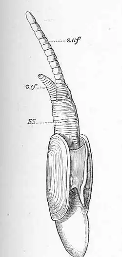 - ^ a b Bromley, Richard G. & Asgaard, Ulla (1990). "Solecurtus strigilatus: a jet-propelled burrowing bivalve". In Morton, Brian (ed.). The Bivalvia. Proceedings of a Memorial Symposium in Honour of Sir Charles Maurice Yonge (1899โ1986), Edinburgh, 1986. Hong Kong University Press. p. 313. ISBN 978-962-209-273-0.