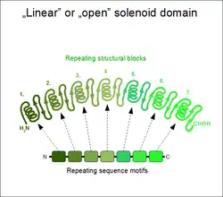 Solenoid protein domains are a highly modular type of protein domain. They consist of a chain of nearly identical folds, often simply called tandem repeats. They are extremely common among all types of proteins, though exact figures are unknown.[1]