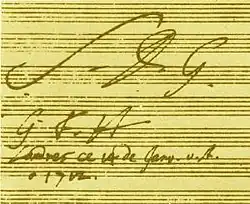 The Baroque composer Johann Sebastian Bach wrote the initials "S. D. G." at the end of all his church compositions and also applied it to some, but not all, his secular works.[2] This dedication was at times also used by Bach's contemporary George Frideric Handel, e.g. in his Te Deum.[6] The 16th century Spanish mystic and poet St. John of the Cross used the similar phrase, Soli Deo honor et gloria, in his Precautions and Counsels.[7]