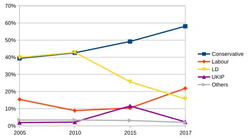 Although its predecessor seat was won by the Liberal Democrats in 2005, intervening boundary changes made the constituency notionally Conservative prior to the 2010 general election, and it is therefore listed as a gain rather than a hold. [17][18]