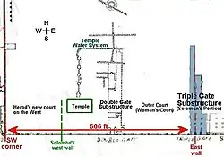 At the time of this writing, the Triple Gate Halls are in ruin and full of rubble. Despite their condition, there is proof that Solomon laid the foundation and built the piers that support the partial ruins. This makes Triple Gate a possible candidate for actually being Solomon's Porch, and unlocking the ultimate mystery of the Temple locations.