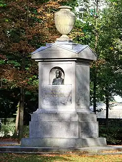 In 1792/93, the Gessner Monument was erected in Platzspitz park. It was designed by Alexander Trippel and was one of the first patriotic monuments in Switzerland. Another monument dedicated to him in Bad Dürkheim was destroyed by the French in 1794.[2] A commemorative plaque has been placed on his lifelong home.[1] Several streets and a bridge have been named after him.
