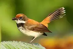 The Solomons rufous fantail (Rhipidura rufofronta) is a species of bird in the family Rhipiduridae that is endemic to the Solomon Islands. It was formerly considered to be a subspecies of the Australian rufous fantail (Rhipidura rufifrons).