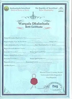 - The confirmation of Somaliland citizenship shall be done in a uniform manner and recorded serially by the Ministry of Internal Affairs. It shall be signed by the Chairman of the relevant region.[20]