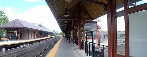 Somerville is a NJ Transit railroad station on the Raritan Valley Line, located south of the downtown center of Somerville, in Somerset County, New Jersey, United States. The historic station building on the north side of the tracks has been restored and now is used by a law firm. Parking lots are located to the south of the station and there is a tunnel there to access the platforms. Like many of the stations on the Raritan Valley Line, Somerville was not a wheelchair accessible station until December 7, 2010.