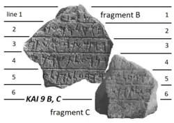 - ^ Donner, Herbert; Röllig, Wolfgang (2002). Kanaanäische und aramäische Inschriften (5 ed.). Wiesbaden: Harrassowitz. p. I, 2.