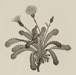 The species has a 15 centimeter tall scape, or leafless stalk, and a thick taproot that often yields multiple flowerheads. The rosette is dense and has leaves that are split but not completely divided, each with a single flower.[5] Sonchus novae-zelandiae demonstrates a wide variety of appearances based on where the plant is from.[4] The species has a chromosome number of 2n = 90, 126.[1]