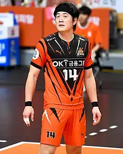 Song Hui-chae (Korean: 송희채; born 29 April 1992) is a South Korean volleyball player who plays as an outside hitter for Seoul Woori Card WooriWON in the South Korean V-League. Song made his first appearance for the South Korean national team in 2012 and played all of the team's six matches at the 2012 Asian Men's Cup Volleyball Championship,[1] where the team finished in fifth place. In 2013, he also completed in the Summer Universiade[2] and East Asian Games[3] as a member of the collegiate national team.