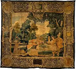 Song of Songs 6 (abbreviated as Song 6) is the sixth chapter of the Song of Songs in the Hebrew Bible or the Old Testament of the Christian Bible.[1][2] This book is one of the Five Megillot, a collection of short books, together with Ruth, Lamentations, Ecclesiastes and Esther, within the Ketuvim, the third and the last part of the Hebrew Bible.[3] Jewish tradition views Solomon as the author of this book (although this is now largely disputed), and this attribution influences the acceptance of this book as a canonical text.[3] This chapter contains a dialogue between the daughters of Jerusalem and the woman about the man, followed by the man's descriptive poem of the woman, ending with a collective call to the woman to return.[4]