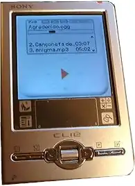 The Sony CLIÉ PEG-TJ35 and PEG-TJ25 were released by Sony in 2003. These models are identical, except the TJ-35 also offers MP3 and ATRAC playback capabilities with a headphone jack. Powered by an ARM iMX-1 processor at 200 MHz, these devices ran the Palm OS 5 platform, featuring 32 MB of internal storage (23M available for user data), as well as a Memory Stick PRO slot for additional storage expansion. Synchronization via USB and Infrared is also possible.[1] The case of these devices appears to be aluminium, but is actually a painted plastic enclosure, with an internal steel plate providing structural rigidity. At the time or release, these devices competed with the PalmOne Zire 71. While navigation on these devices could be performed using the touchscreen, as was common for many Clie models, these devices also featured a scrolling wheel offering easy one-handed vertical navigation, which could be pressed in to select items.