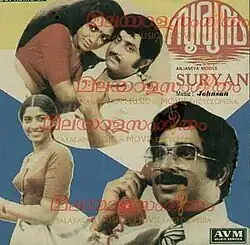 Sooryan is a 1982 Indian Malayalam film, directed by J. Sasikumar and produced by Babu. The film stars Ajayan, Sukumaran, Jalaja and M. G. Soman in the lead roles. The film has musical score by Johnson.[1][2][3]