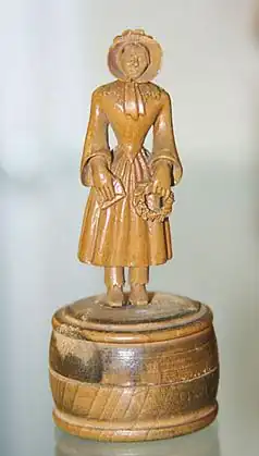 Helena Isberg was born at Säby in Tranås in Småland. She moved with her parents and brother to Motala in 1840, where she lived her entire life. Her father was a cabinet maker. Isberg was tutored by her father to cabinet maskery, lathing and carving, and was to become famous for her wood carving. In 1847, her work was exhibited in Stockholm, and made a success. She was asked to move to Stockholm, the professor Carl Gustaf Qvarnström (1810–1867) offered her a scholarship to study at the Royal Swedish Academy of Arts, Queen Josephine offered her an allowance of $200, but she declined every offer. A contemporary writer wrote about her: She preferred to stay in the poor hut where she was born, and remained in the bosom of the poverty which had surrounded her cradle.[1]