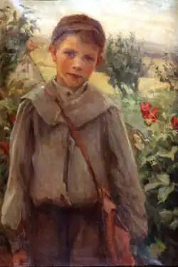 Pemberton showed her work at many regional galleries in the UK (1895-1898), at the Art Association of Montreal (AAM) (1895 and in 1910), the Royal Canadian Academy of Arts (1904, 1907, 1909),[11] the Royal Academy in London (1897, 1898, 1901, 1904, 1907, 1910, 1916),[10][4][12] the Paris Salon with honourable mention medal in 1899 for her painting Little Boy Blue (Art Gallery of Greater Victoria) (1899, 1900 and 1903), the Canadian section of the Exposition Universelle in Paris (1900),[4]in Victoria (1902, 1904),[13] in Vancouver (1904),[2] and in the Canadian exhibition at the Louisiana Purchase Exposition (the St. Louis World's Fair) (1904). She exhibited 30 of her works at the Provincial Agricultural Exhibition in Victoria, B.C. and a show of The Pemberton Pictures in Vancouver (both 1904).[4] She had a solo show of 40 oil landscapes at the Doré Gallery in London in 1909. In Victoria, she also had work in the Island Arts and Crafts Society exhibitions in 1916, 1921, and 1922.[2]