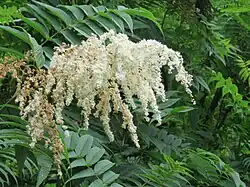 Sorbaria tomentosa, the Himalayan sorbaria or Kashmir false spirea, is a species of flowering plant in the family Rosaceae. A shrub with white flowers that can grow up to 6 metres in height.[2] It is native to Afghanistan, Central Asia and the Himalayas, and has been introduced to the South Island of New Zealand.[1][3] It has gone extinct in Tajikistan.[1] Its putative variety Sorbaria tomentosa var. angustifolia, the narrow-leaved Himalayan sorbaria, has gained the Royal Horticultural Society's Award of Garden Merit.[4]