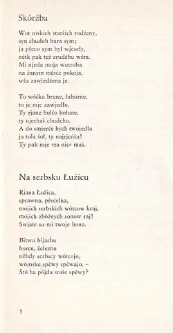 Jurij Brězan published books both in Upper Sorbian and German and Jurij Koch in Lower Sorbian and German.[4]